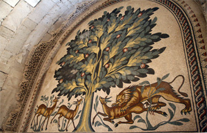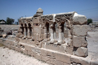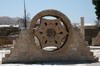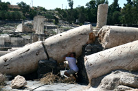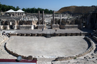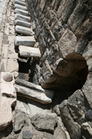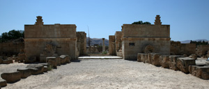 | ↑這個在古代是一個很繁華的城市,見有一條Cardo在其中間,兩邊就是商店和大型室內浴池。 | ↑圓形廣場,在這裡表演十分有氣派。 | ↑在其中一間商店遺址地上的Mosaic。 |